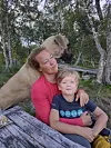 Privat er Lill-Marit og familien en aktiv gjeng, som ofte drar på tur i naturen. Her er hun sammen med yngstesønnen Varg og familiens Grand danois Jølle.Privat